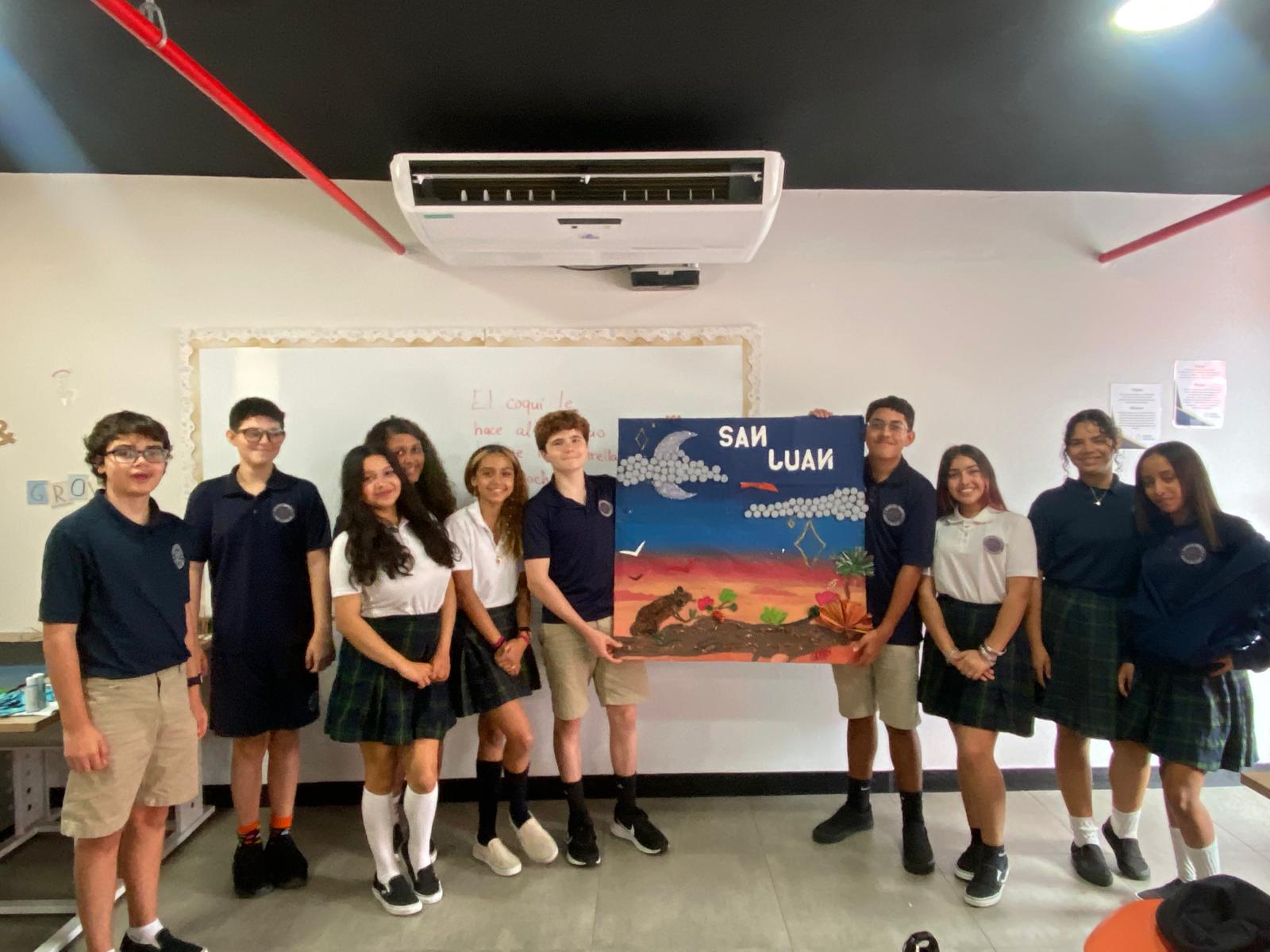 Integrating the theme of recycling and conservation into the Spanish week, students also created posters alluding to the works of this great Puerto Rican figure, using materials that could end up in the trash.