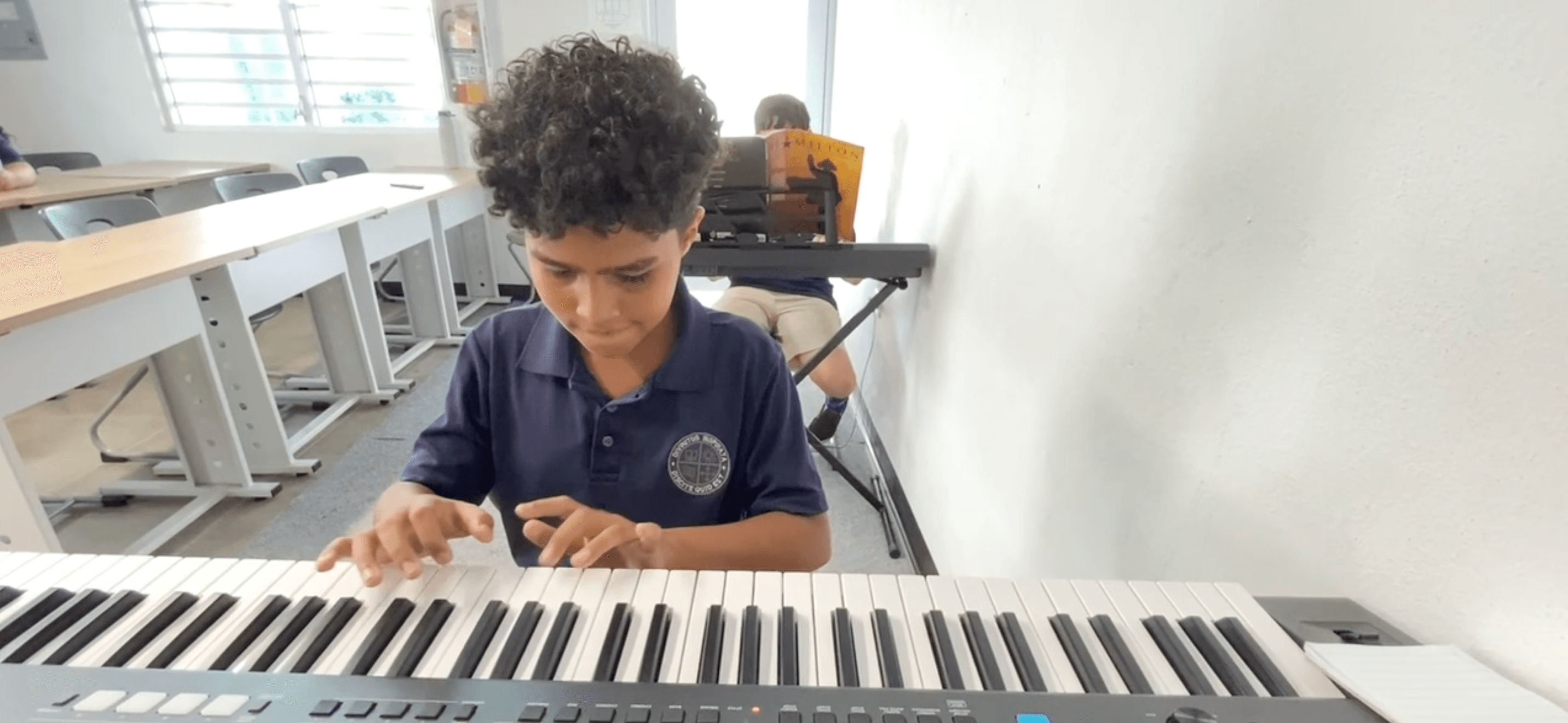 The music classes at Paradiso are designed so that students can acquire all the benefits that music can have during the school years. Steven, the music teacher at Paradiso Arecibo, explains a bit about what happens during the class.